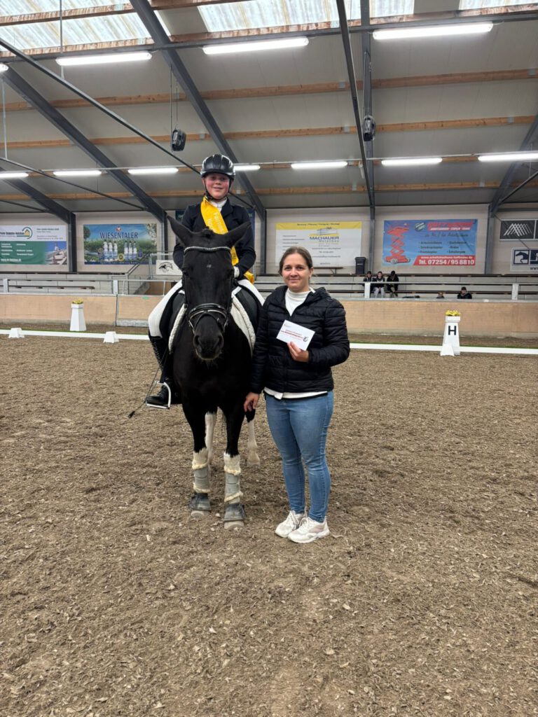 2025 | Allgemein | Dressur | JFP | Jugend Fairnesspreis Dressur 2025 VonRalf Zinsmeister 5. Oktober 20259. Oktober 2025 Im Rahmen der ersten Wertungsprüfung Finale Jugend-Förderpreis Nordbaden Dressur, wurde auch dieses Jahr von unserer Jugend ein Fairnesspreis vergeben.Julian Lieb erhielt diese Sonderehrung von Eva Greulich.Herzlichen Glückwunsch! 9